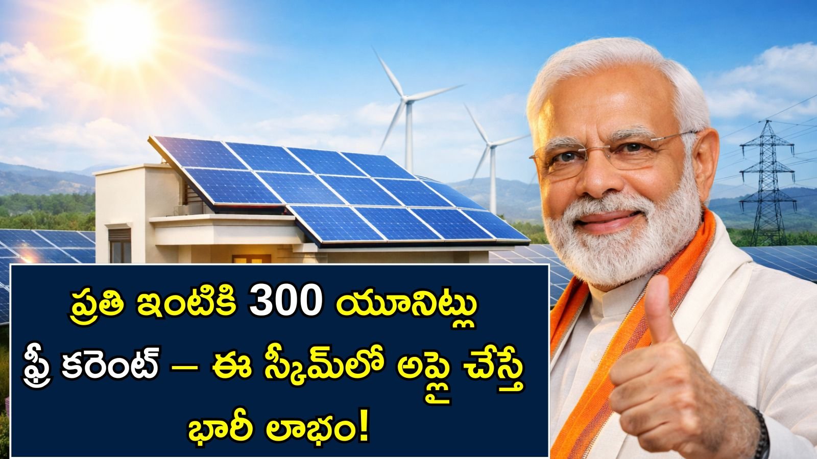 ఈ పథకం ద్వారా ఇంటి పైకప్పుపై సోలార్ ప్యానెల్స్ అమర్చుకుంటే గరిష్టంగా ₹78,000 వరకు సబ్సిడీ లభిస్తుంది. అంతేకాదు, ఇంట్లోనే విద్యుత్ ఉత్పత్తి చేసుకుని నెలకు సుమారు 300 యూనిట్ల వరకు ఉచితంగా కరెంట్ వాడుకునే అవకాశం కూడా ఉంటుంది. దీని వల్ల కుటుంబాలపై ఉన్న విద్యుత్ ఖర్చు తగ్గడమే కాకుండా పర్యావరణానికి కూడా మేలు జరుగుతుంది.